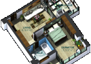 În imobilul Young Residence 2 există cate un apartament cu 2 camere tip 2D pe fiecare etaj 1, 2 și 3.